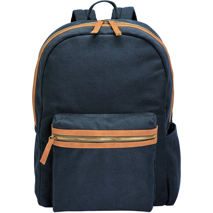 Tidløs PC-ryggsekk av resirkulert kanvas. Innvendig er det et polstret rom til en 15'' laptop. Baksiden og skulderremmene er polstret. På forsiden er det en mindre lomme med glidelåslukking og på den ene siden er det en lomme til drikkeflaske. Det er bare mulig med 1-fargetrykk.