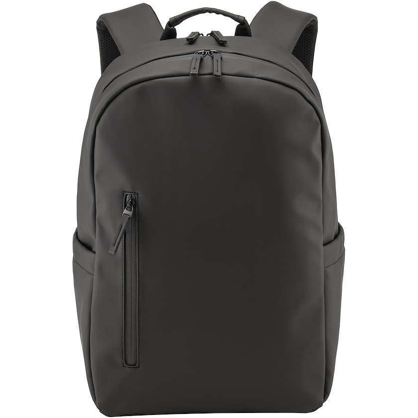 Vanntett PC-ryggsekk med trykk. Innvendig er det en polstret lomme til 15'' laptop. Glidelåsen er forsterket slik at den ikke slipper inn fuktighet. Baksiden og skulderremmene er behagelig polstret og laget av et materiale som puster. Det er bare mulig med 1-fargetrykk.