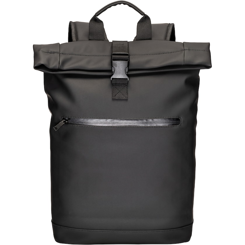 Vanntett rolltop-ryggsekk med trykk. Innvendig er det et polstret rom til en bærbar PC på 15''. Glidelåsen er forsterket så den ikke slipper inn fuktighet. Bare 1-fargetrykk.