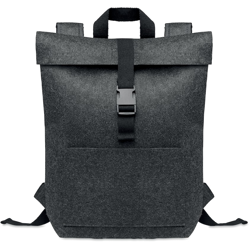Rimelig rolltop-ryggsekk av miljøvennlig filtmateriale. Innvendig er det en lomme til laptop, med plass til de fleste bærbare PC-er opptil 13''. Ryggsekken er produsert av et robust filtmateriale av RPET (resirkulerte PET-flasker).