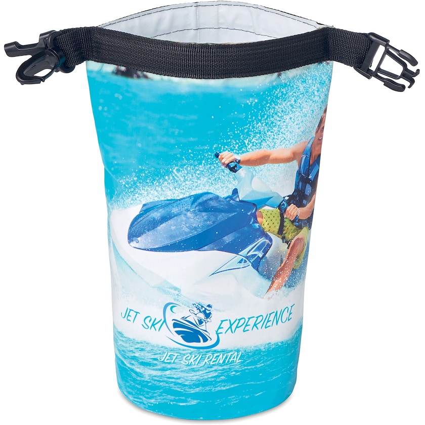 Liten vanntett sjøsekk. Sjøsekken er laget av 0.36 mm PVC og rommer 1,5 liter. Last ned trykkmalen og lag en sjøsekk med eget design. Siden sjøsekken produseres på bestilling, er leveringstiden lenger enn normalt. Minsteantallet er 150 stk.