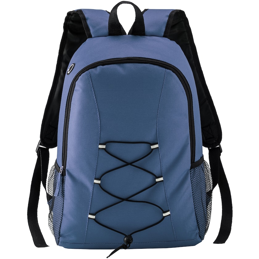 Rimelig ryggsekk med eget trykk. Ryggsekken har to nettinglommer på sidene. Baksiden og skulderremmer er polstrede. Det er bare mulig med 1-fargetrykk.