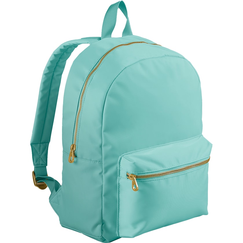 Fargerik ryggsekk med gullfarget glidelås. Laguna har et stort hovedrom og et mindre rom på forsiden med glidelåslukking. Baksiden og skulderremmene er behagelig polstrede. Ryggsekken er laget av 100% nylon med fôr av 100% resirkulert nylon.