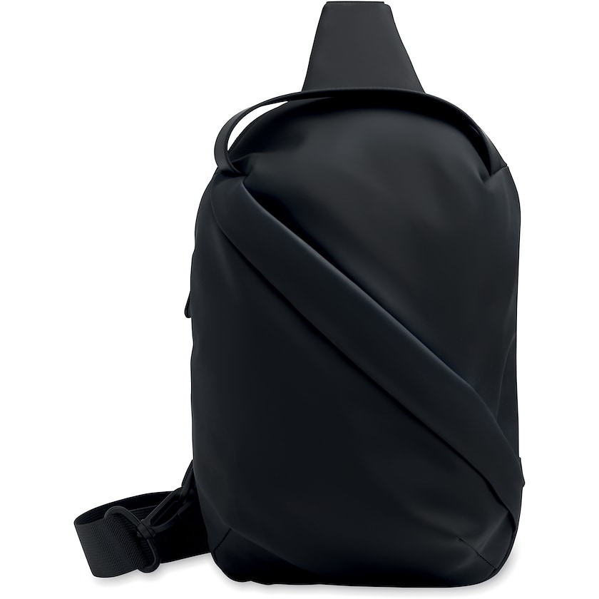 Crossbody-veske av mykt materiale. I tillegg til hovedrommet, er det også en mindre lomme på forsiden med glidelåslukking. Bare 1-fargetrykk.