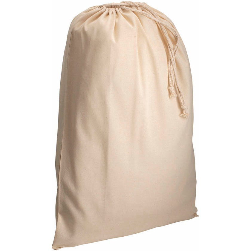 Superstor bomullspose av 120 grams bomullsstoff. Aruba er naturfarget og har snøring på toppen. Et godt valg for deg som ønsker en virkelig stor bomullspose.