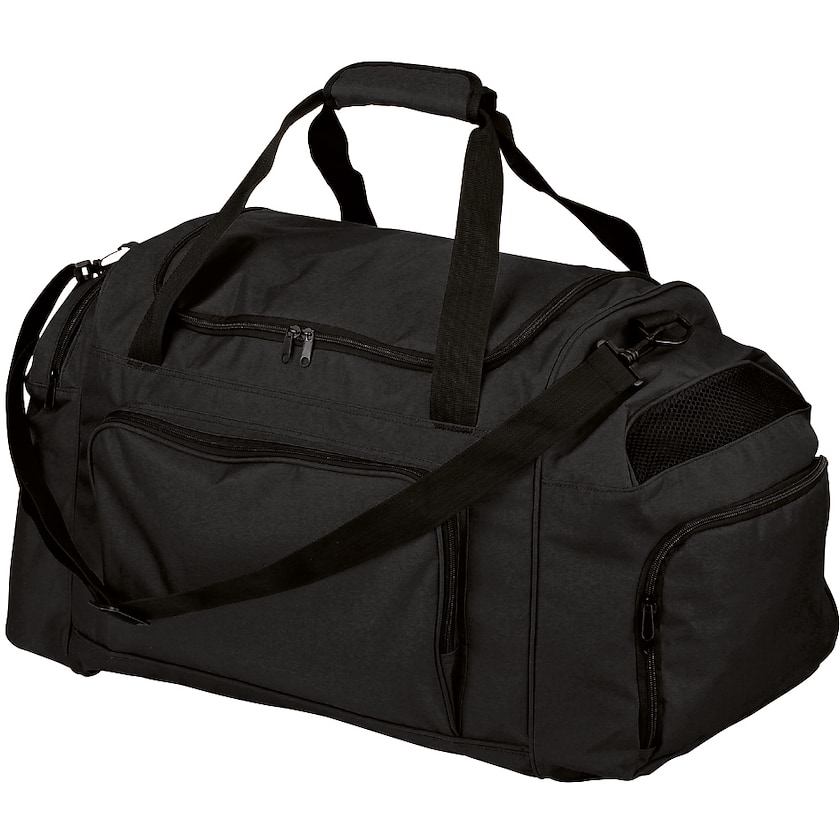 Romslig og robust sportsveske med store utvendige lommer med glidelås.