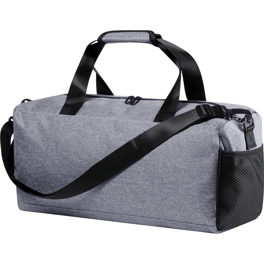 Sportsveske med nettinglommer på kortsidene. Skulderremmen er regulerbar. En stilig sportsveske til riktig pris.