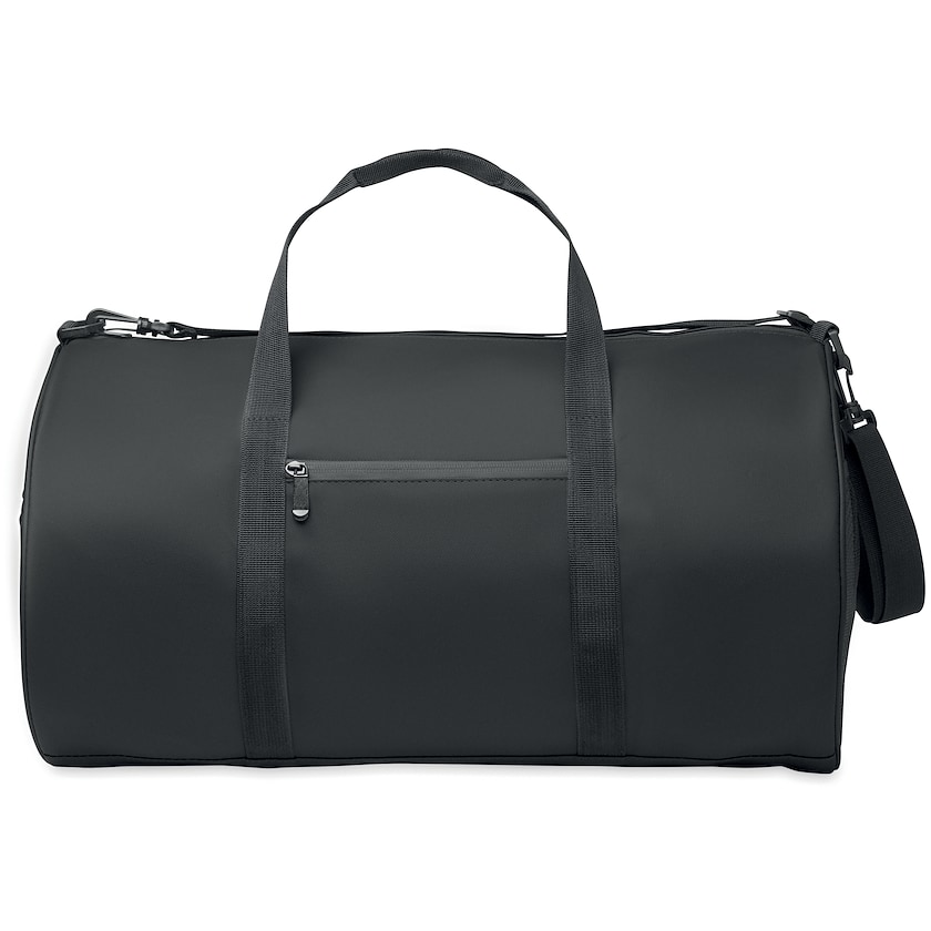 Duffelveske av resirkulert materiale. På forsiden, kortsidene og innvendig er det en mindre lommer med glidelåslukking.