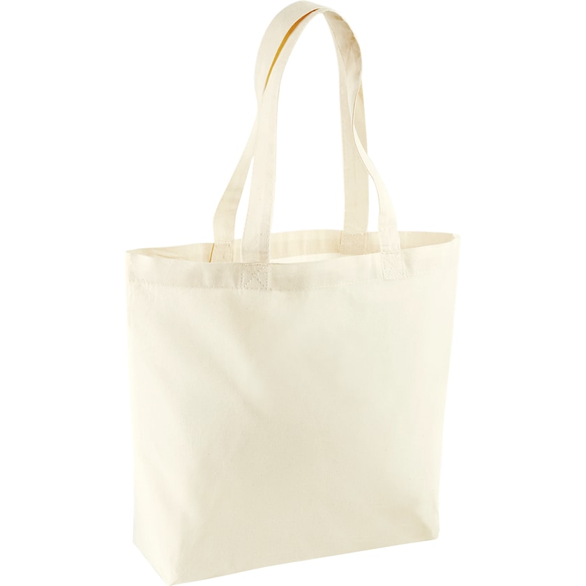 Robust bomullspose produsert av 100% økologisk bomull. Posen har et naturfarget stoff med bred bunn. Håndtaket har en lengde som gjør det mulig å bære vesken i hånden eller på skulderen.
